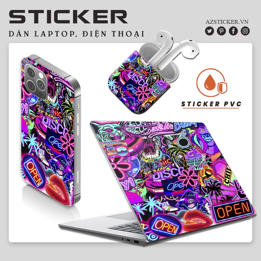 Set Sticker Neon | Dán Nón Bảo Hiêm, Điện Thoại, Laptop, Bình Nước , Vali...Chống Nước, Chống Bay Màu..