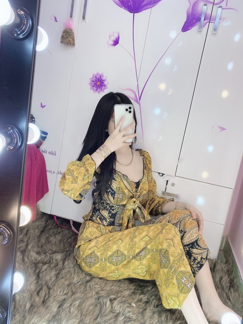 Set thổ cẩm tay dài nơ ngực hình thật sp