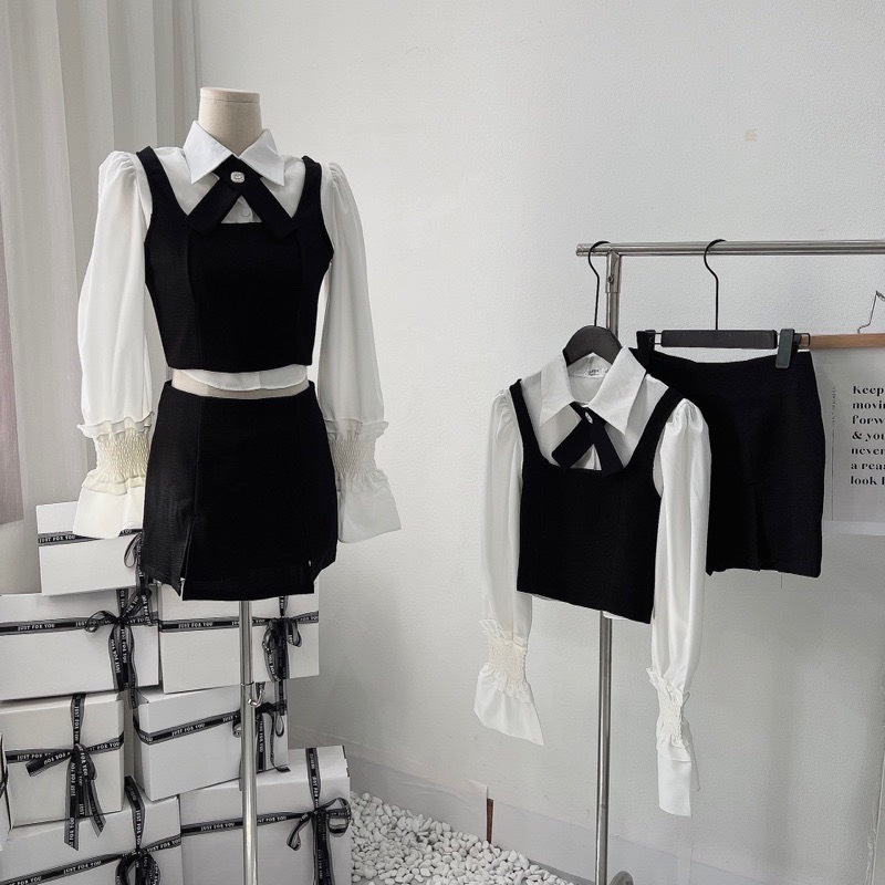 Set váy 3 chi tiết áo sơ mi+áo gile mix chân váy có lót quần mặc đi học đi làm đi chơi M.Store99