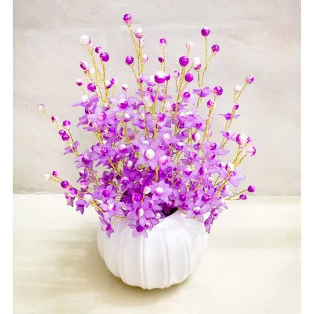1. Video hướng dẫn cách làm tại kênh youtube: HA Craft hoặc kênh ti-kt-ok: hoatrangtri.ha 2. Set bao gồm: - 170 hoa màu tuỳ chọn (150gr) - 245 hạt nụ hình bông hoa 8mm màu phù hợp hoa (80gr) - 80 sợi kẽm xi #24 dài 80cm - 1 băng keo vàng - KHÔNG GỒM BÌNH CẮM HOA #ho