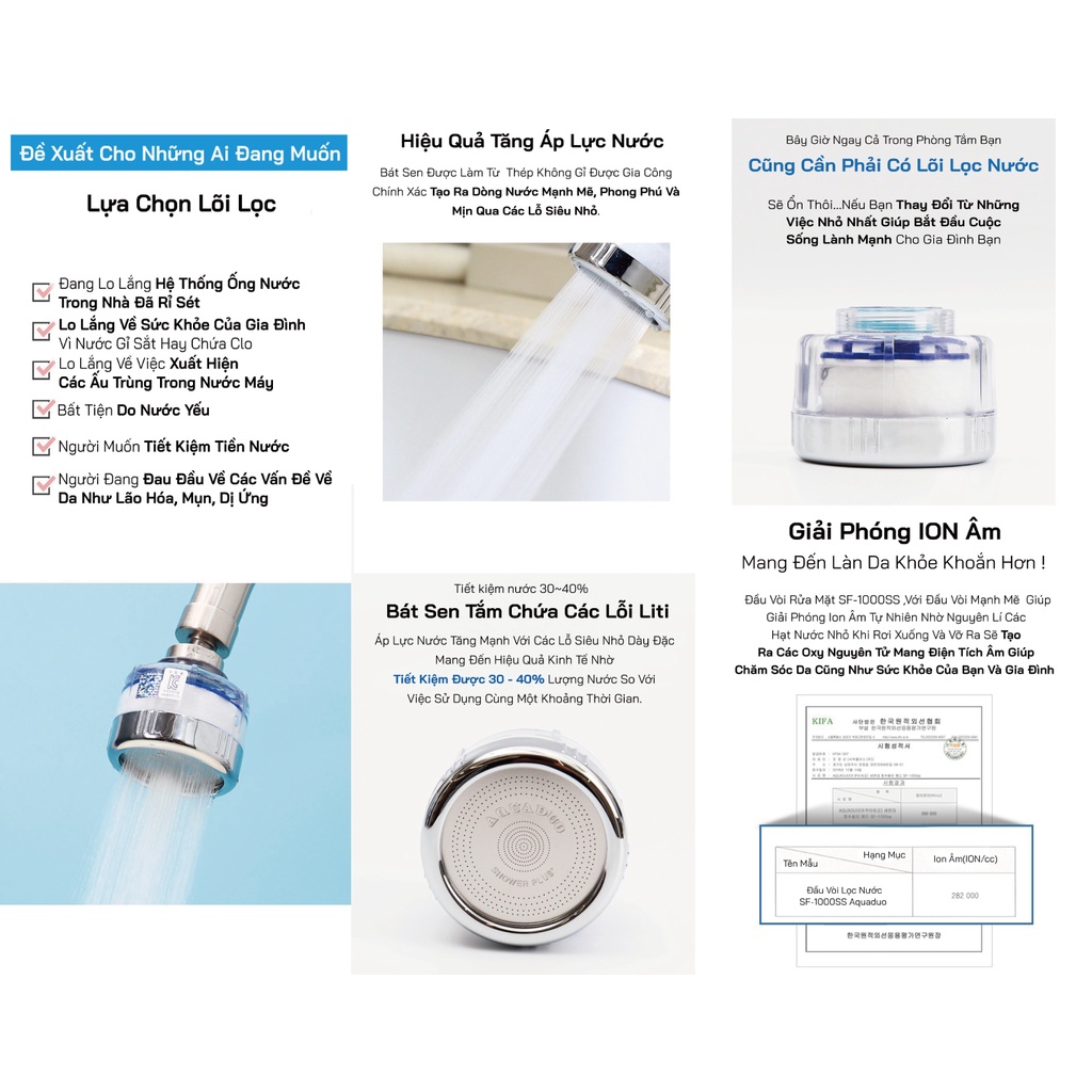SF-1000SS Combo Đầu vòi bồn rửa tay , 6 Thanh lọc nước AQUADUO SOON100U