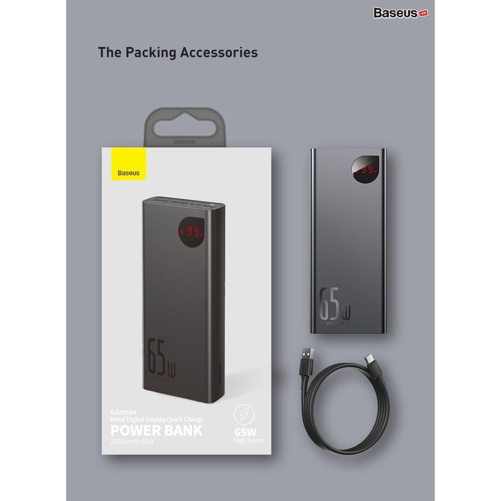 Ship hoả tốc - Pin sạc dự phòng 65w 20.000mah BASEUS sạc nhanh ,chính hãng sạc dự phòng cho laptop-marbook