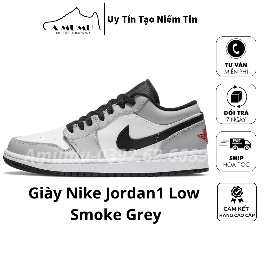 Giày thể thao Jordan 1 cổ thấp xám smoke phiên bản cao cấp, giày Sneaker jd1 low smoke grey xám