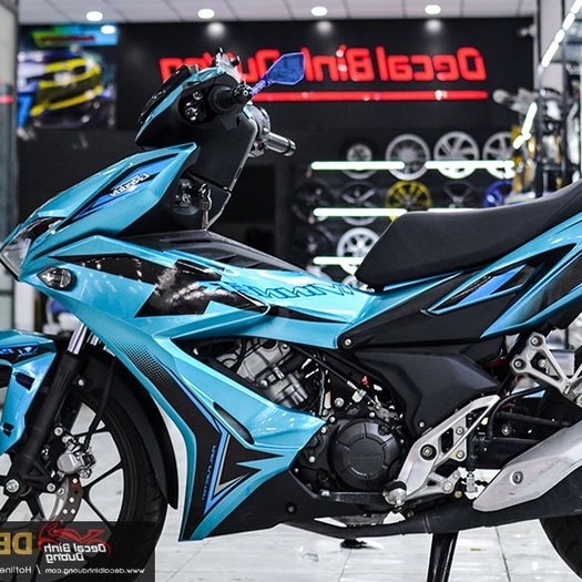 Tem Trùm Xe Máy - Decal Xe Exciter 150 Xanh Bạc Phối Chi Tiết Lạ Mắt - Candy Nhám