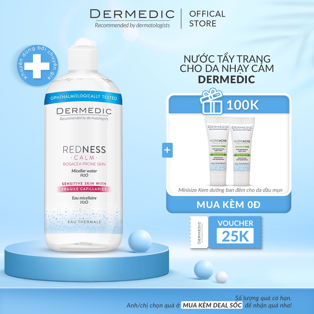 Nước rửa mặt, tẩy trang cho da nhạy cảm, mẩn đỏ Dermedic Redness Micellar water 500ml