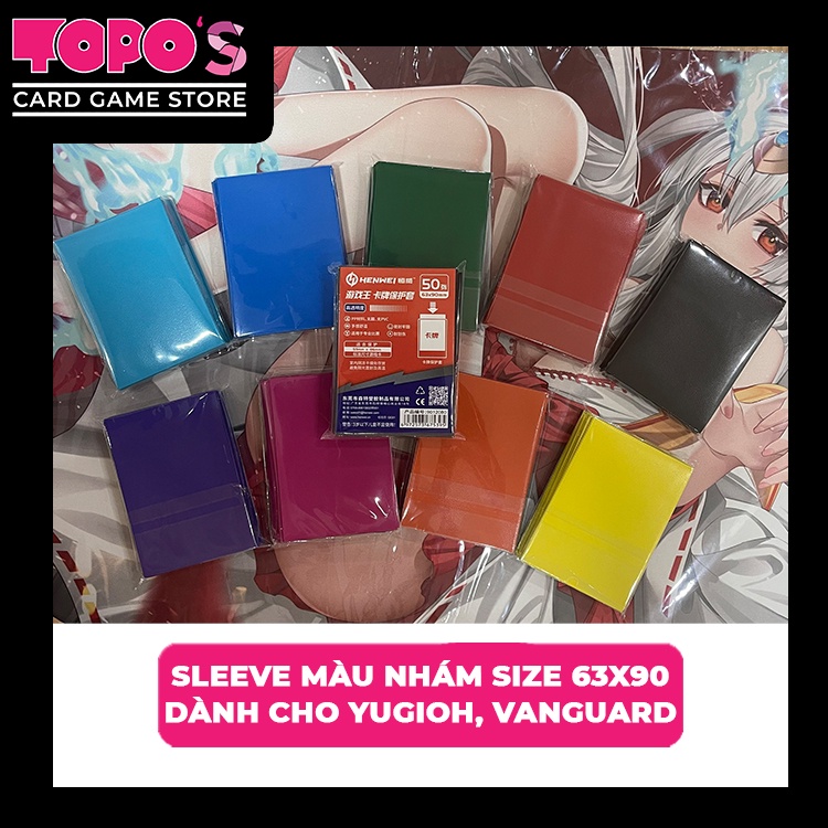 Gói 50 chiếc bọc bài màu chính hãng Henwei nhám lưng cho thẻ Yugioh, Vanguard.