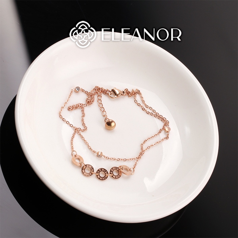 Lắc chân nữ titan Eleanor Accessories sợi kép mặt tròn khắc số la mã phụ kiện trang sức 3476