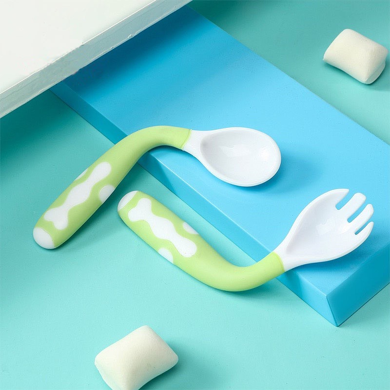 Bộ 2 muỗng + dĩa tập ăn có thể tuỷ chỉnh độ cong kèm hộp đựng