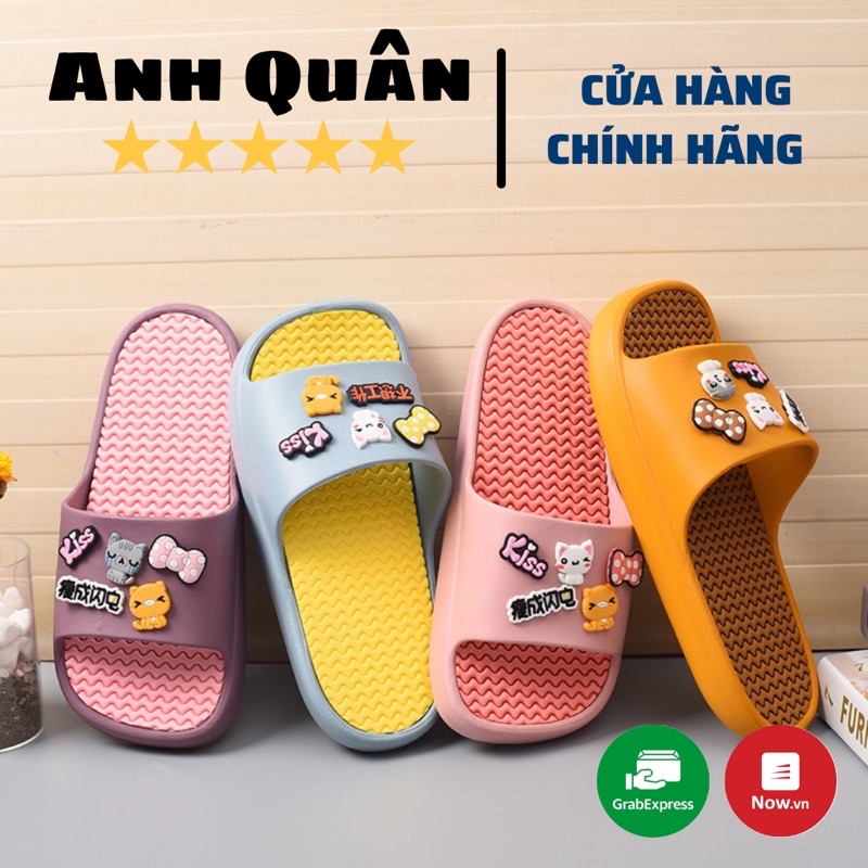 Dép quai ngang nữ thời trang đúc nguyên khối đi trong nhà văn phòng đi chơi gắn hình MÈO CHỮ đáng yêu năm 2022