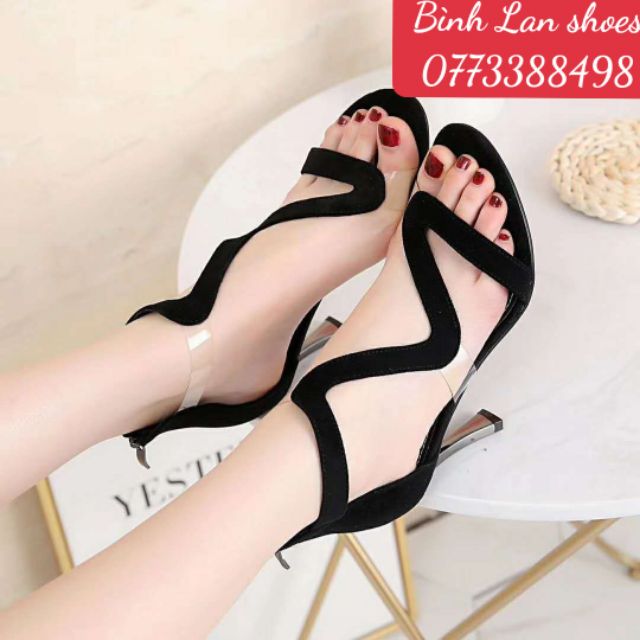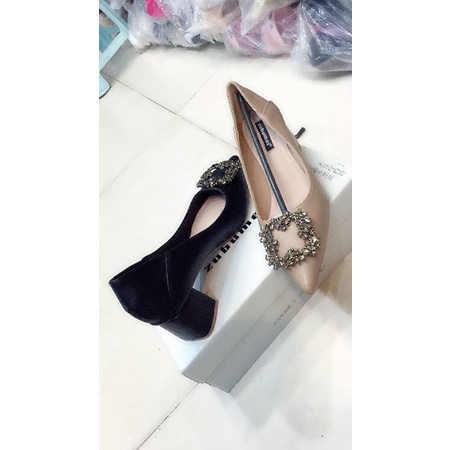 Giầy da lộn gót nhọn mũi nhọn vào 7 phân hàng quảng châu cao cấp đính đá