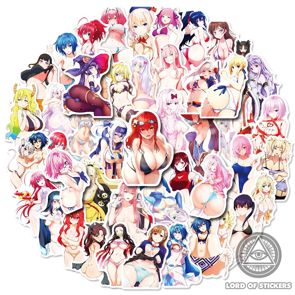 Set 50 Hình Dán Sexy Anime Girl Sticker Hentai Ecchi Waifu Chống Thấm Nước Trang Trí Mũ Bảo Hiểm, Laptop, Ván Trượt, Sổ