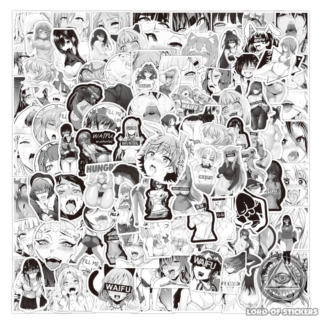 Set 100 Nhãn Dán Hình Ahegao Waifu Đen Trắng Hentai Ecchi Anime Sticker Chống Thấm Nước Dán Mũ Bảo Hiểm, Laptop, Vali