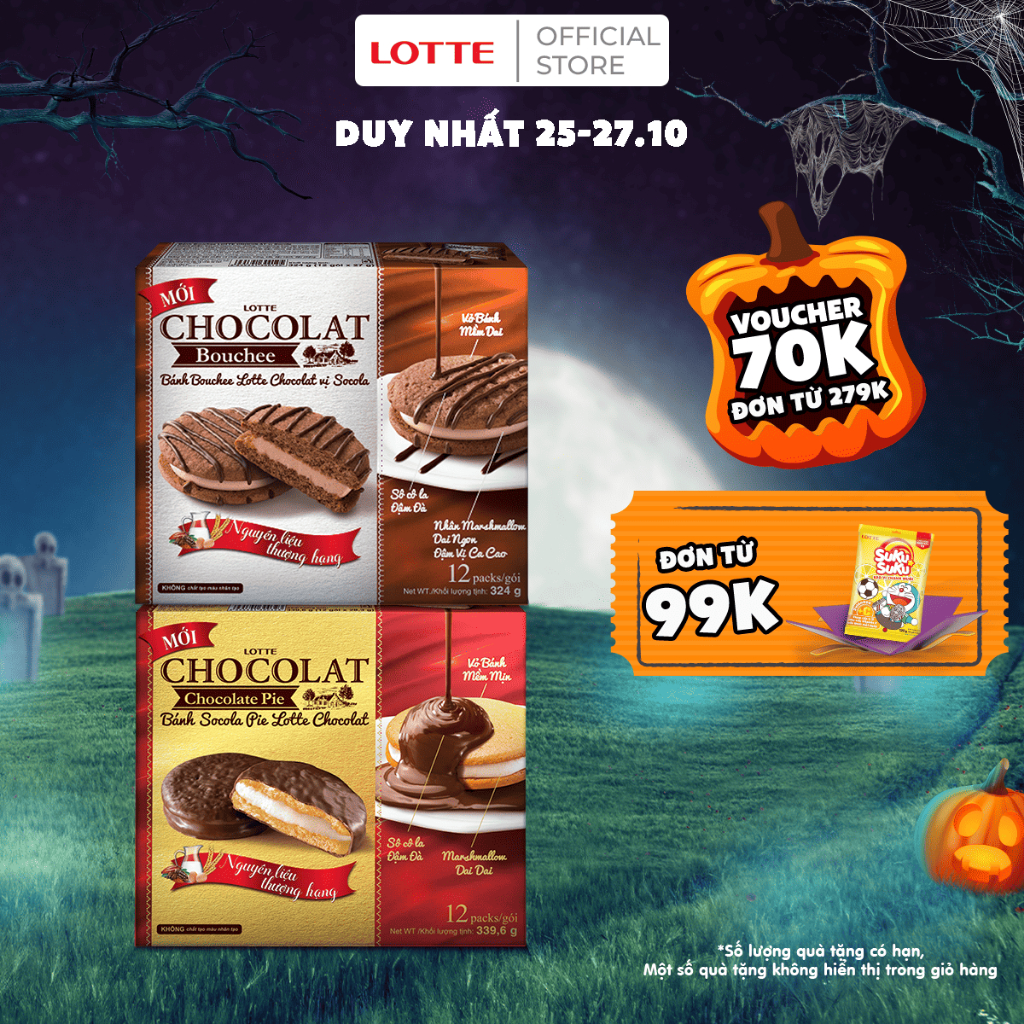 Bánh Lotte Chocolat Pie vị Socola & Bánh Chocolat Bouchee hộp 6 cái & hộp 12 cái