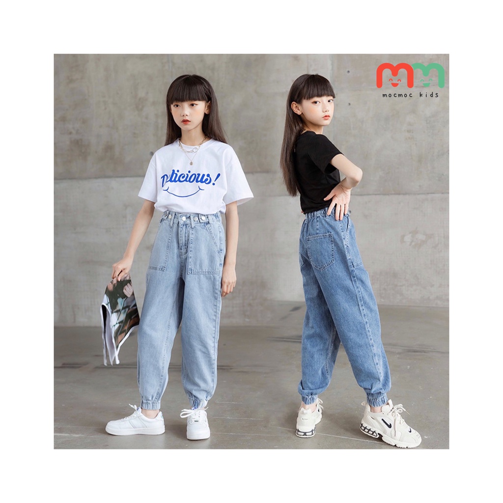Quần jogger bé trai hiphop chất jean co dãn cao cấp lưng thun ống bo lai dáng hiphop cho bé 11kg đến 41kg