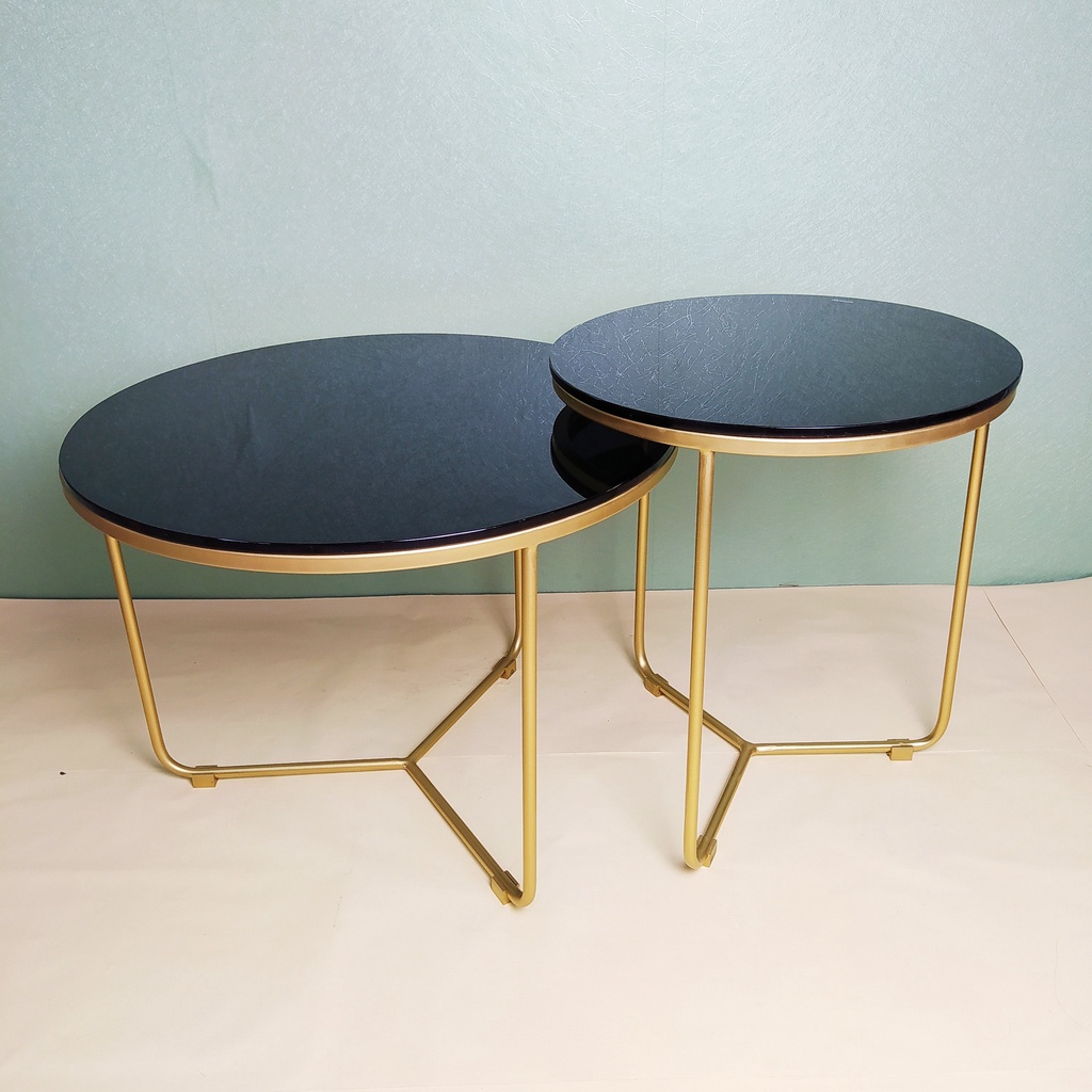 Bàn tròn cafe, tiếp khách chân thép sơn đen kết hợp inox mạ vàng B05