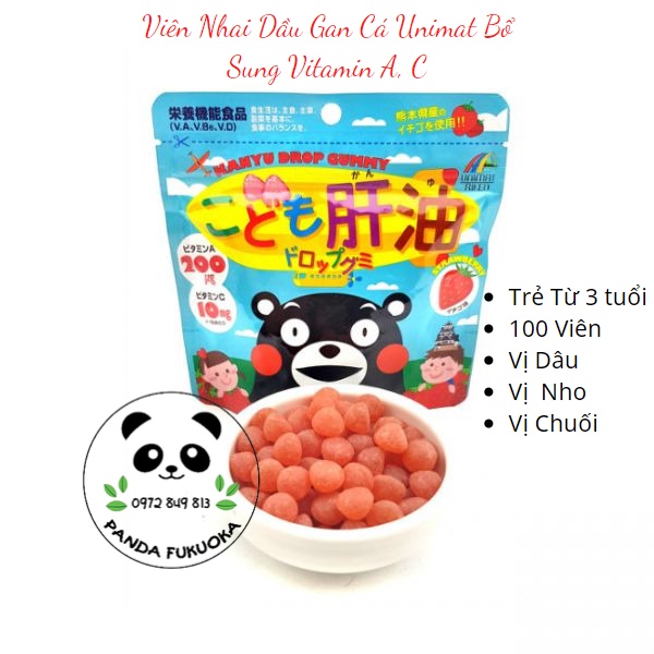Viên Nhai Dầu Gan Cá Unimat Riken Bổ Sung Vitamin A, C 100 Viên Cho Bé Từ 3 Tuổi Kẹo Ngậm Bổ Sung Vitamin Nhật