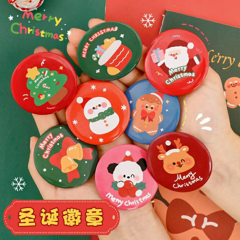 Ghim cài huy hiệu Noel hình tròn to ghim cài áo balo Giáng sinh phụ kiện trang trí phần thưởng cho học sinh