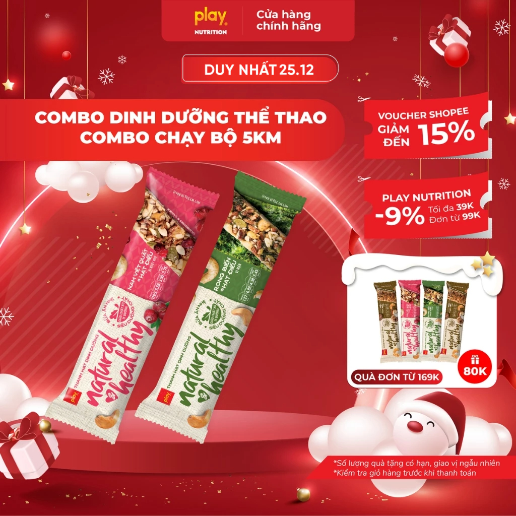 Combo 2 thanh hạt dinh dưỡng PLAY Natural & Healthy - Combo chạy bộ 5km