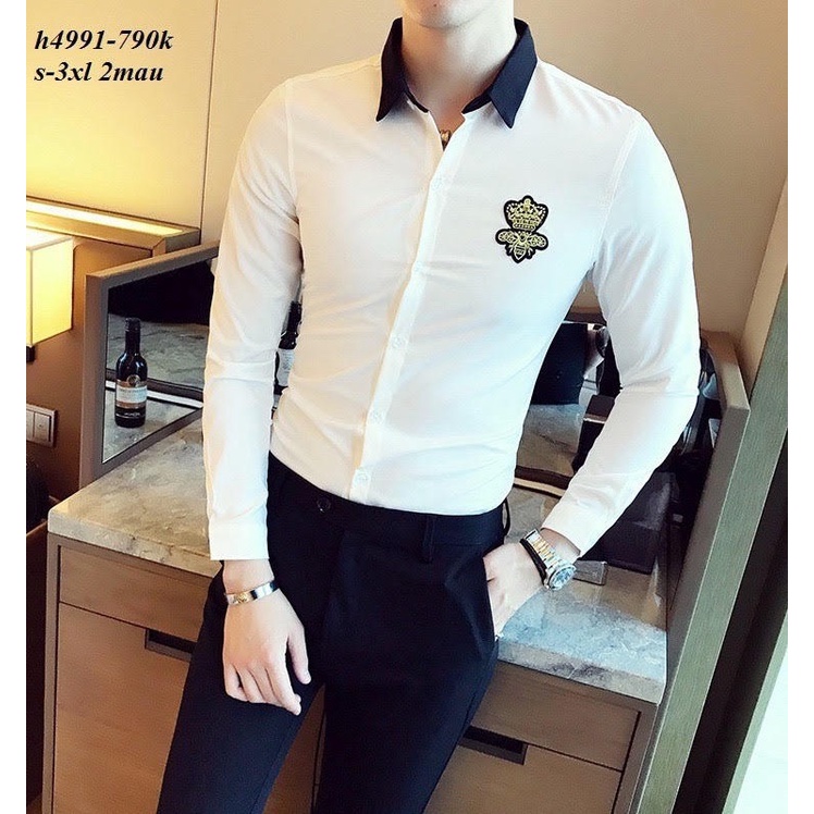 ÁO SƠ MI NAM THÊU HỌA TIẾT CAO CẤP KIỂU DÁNG HÀN QUỐC CHUẨN SOÁI CA SHOPMRVAN