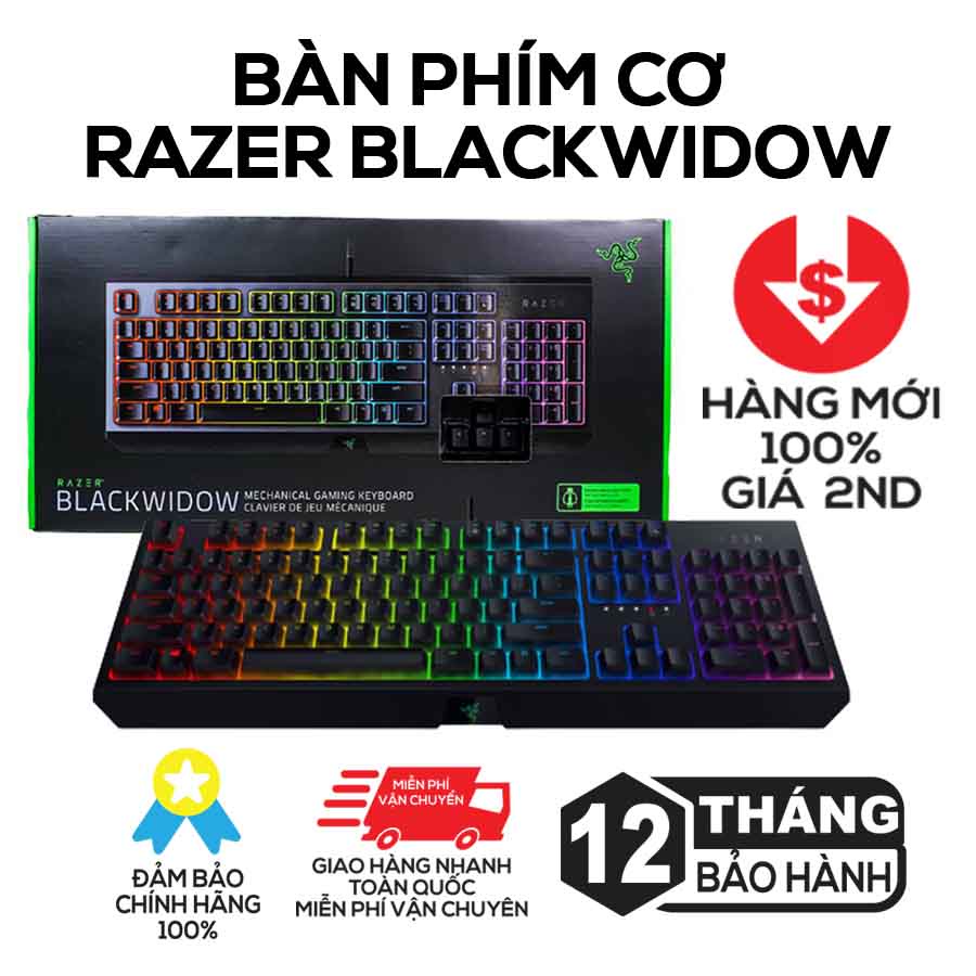 Bàn phím cơ game Razer Blackwidow - Bàn phím cơ chơi game giá rẻ chính hãng không led rgb