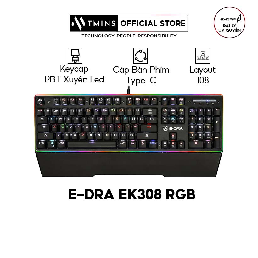 Bàn phím cơ E-DRA EK384 - Led RGB - Huano Switch - Kết nối Type-C