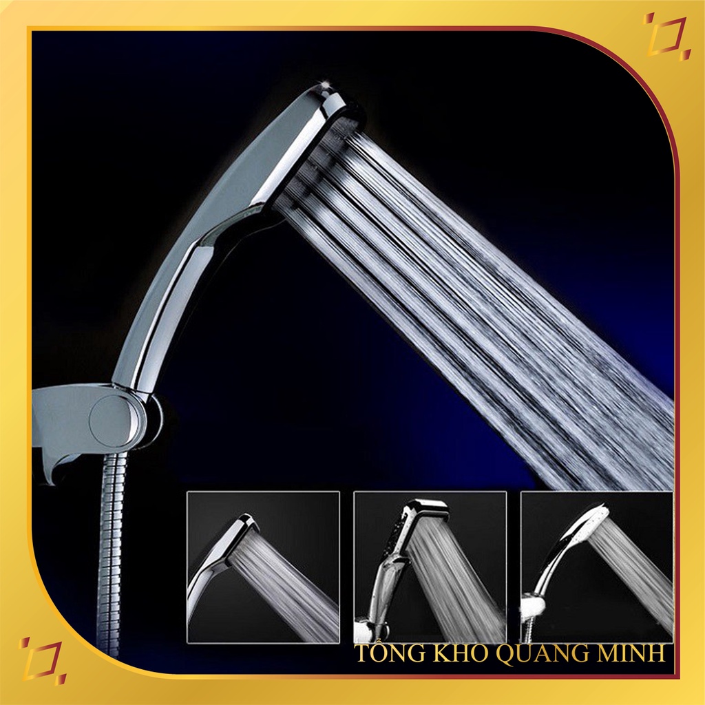 Bộ vòi tay sen tăng áp cao cấp mạ Bạc 3 chế độ xoay 360 độ gồm tay sen + dây sen + gác cài nhôm dán - QM.TS017B3