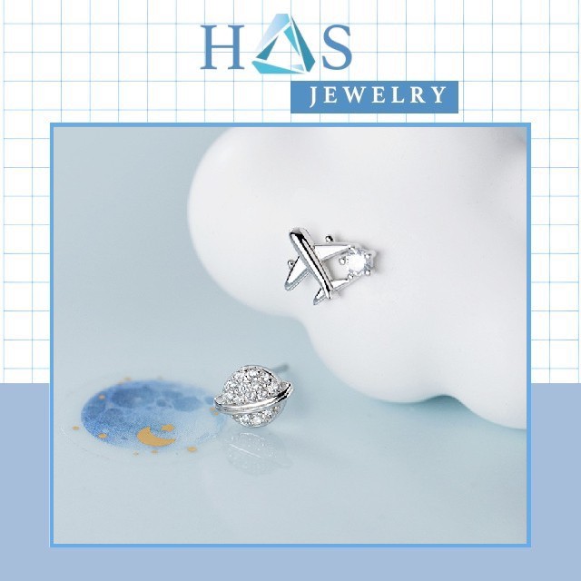 Bông tai bạc H.A.S đính một viên đá Cz 4 chấu Size 2mm-3mm-4mm-5mm-6mm - Khuyên tại nữ bạc 925