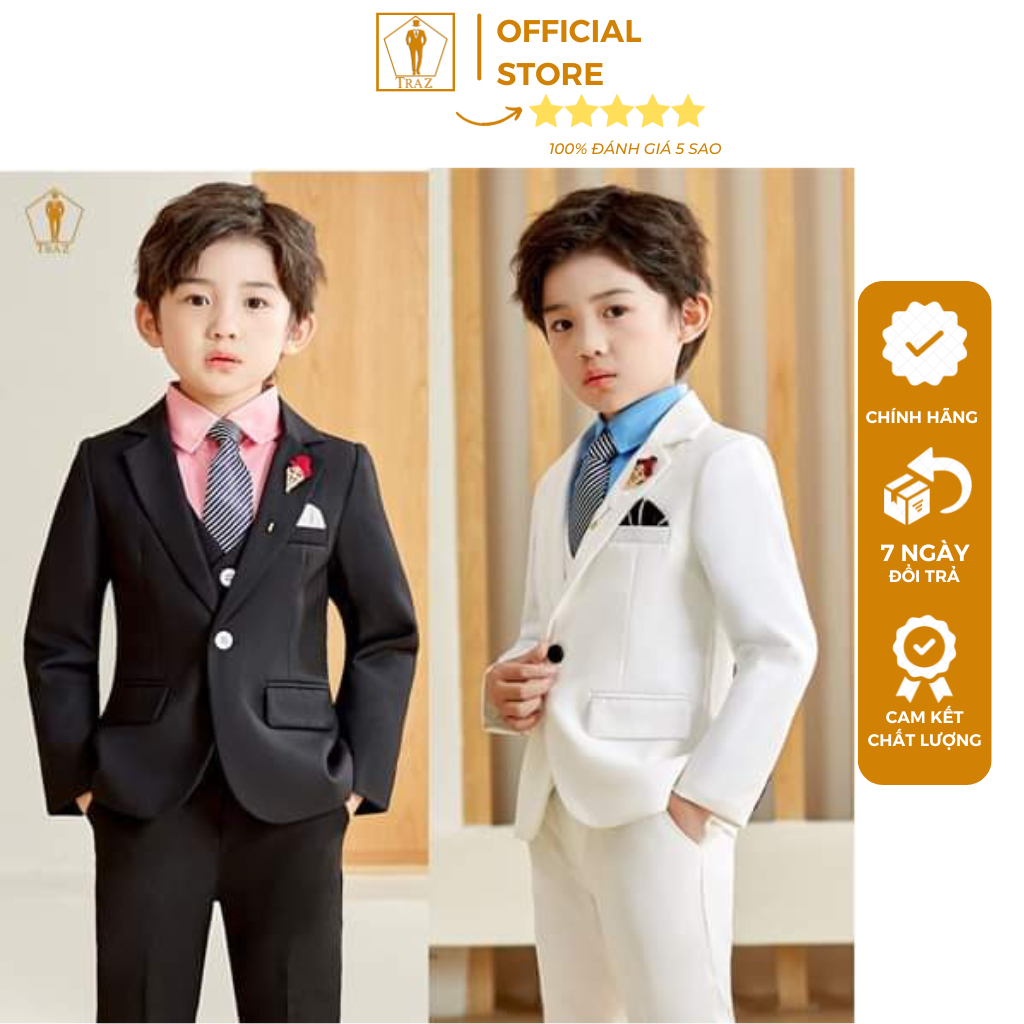 Bộ vest cho bé trai TRAZ màu trắng 1 cúc Hàn Quốc siêu đẹp