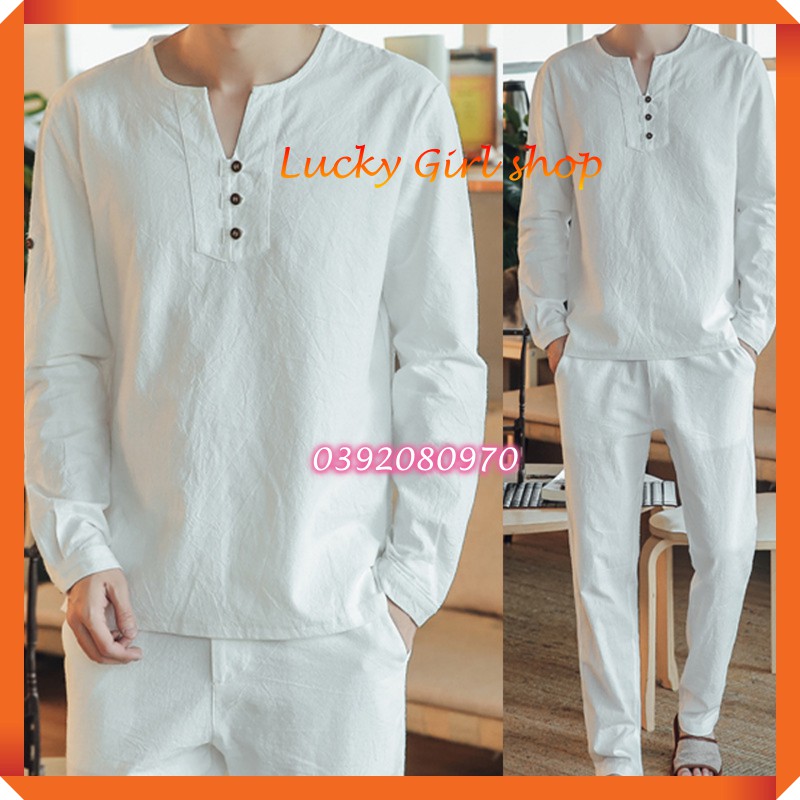 Áo Sơ Mi Chuối Nam, Quần Đùi Chuối Nam Vải Lanh Loại I Đủ Size Từ 55-115kg - Lucky Girl shop