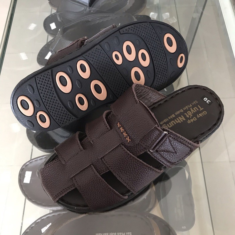 Sandal da nam bít đầu khâu viêt đế cao su chống trơn trượt