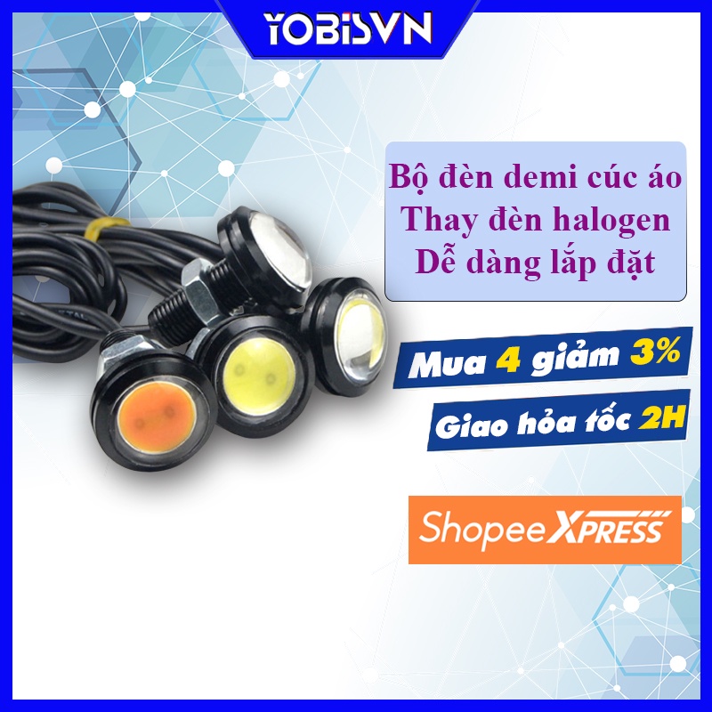Bộ 2 Led Mắt Đại Bàng, Demi Cúc Áo Sáng Cảnh Báo Nhấp Nháy Trắng, Giữ Khoảng Cách Xe Máy