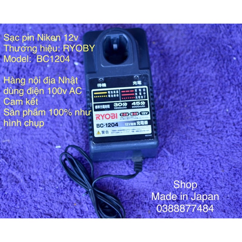 Sạc pin niken máy cầm tay 12v. Thương hiệu Ryobi Hàng Nhật bãi bản dùng điện 100v Dùng sạc pin 12v Sạc bền bỉ, dòng điện ổn định nâng cao độ bền cho pin. #shopmadeinjapan #sacniken #sacnoidia #sac12v Cam kết sản phầm đúng 100% hình chụp Cám ơn quý khách hàng đã tin tưởng lựa chọn sản phần của Shop Made in Japan. , MADE IN JAPAN