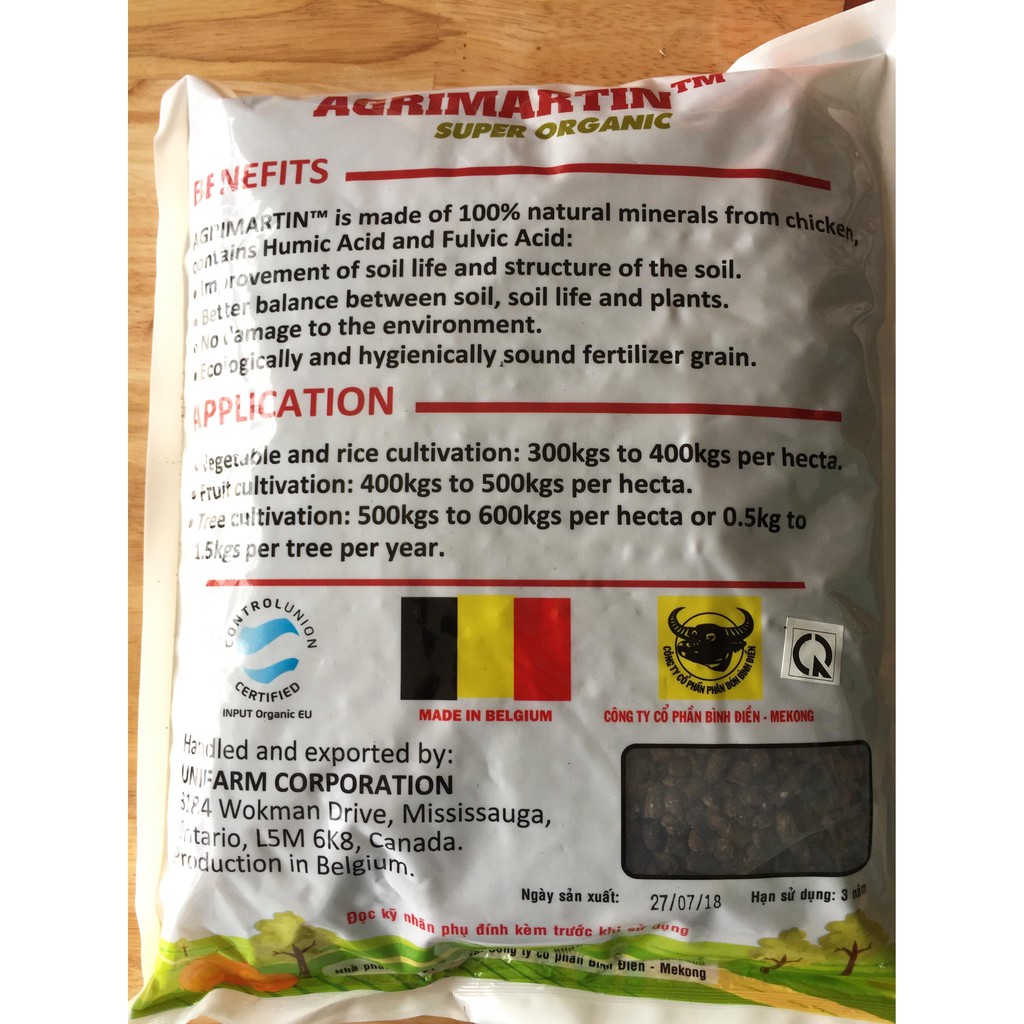 Siêu phân hữu cơ dạng viên-nhập khẩu tại Bỉ