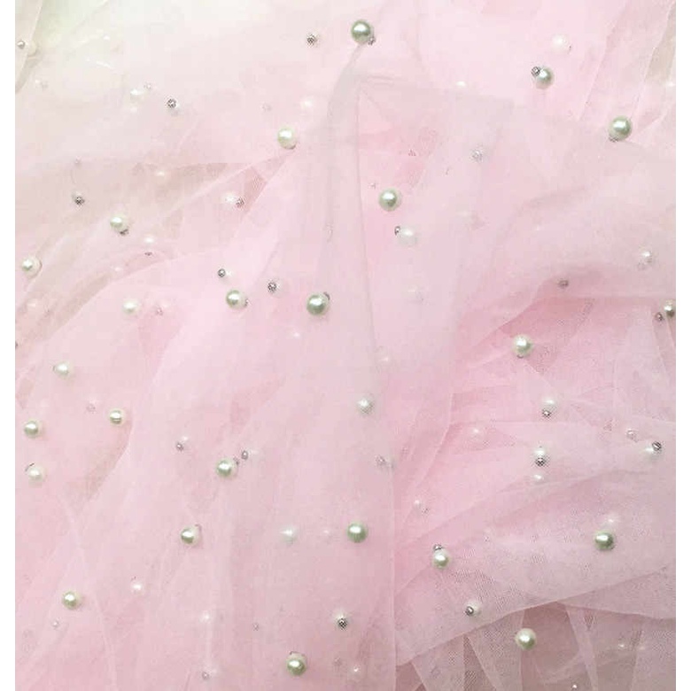 ⚡Siêu rẻ⚡ Vải voan lưới ren đính hạt trai nhựa loại hạt đều dùng chụp sản phẩm, chụp nail, làm phông nền trang trí