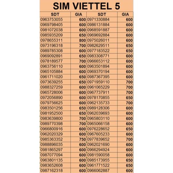 SIM VIETTEL SỐ ĐẸP-PHONG THỦY-NĂM SINH-THẦN TÀI- SỐ DỄ NHỚ GIÁ HỢP LÝ