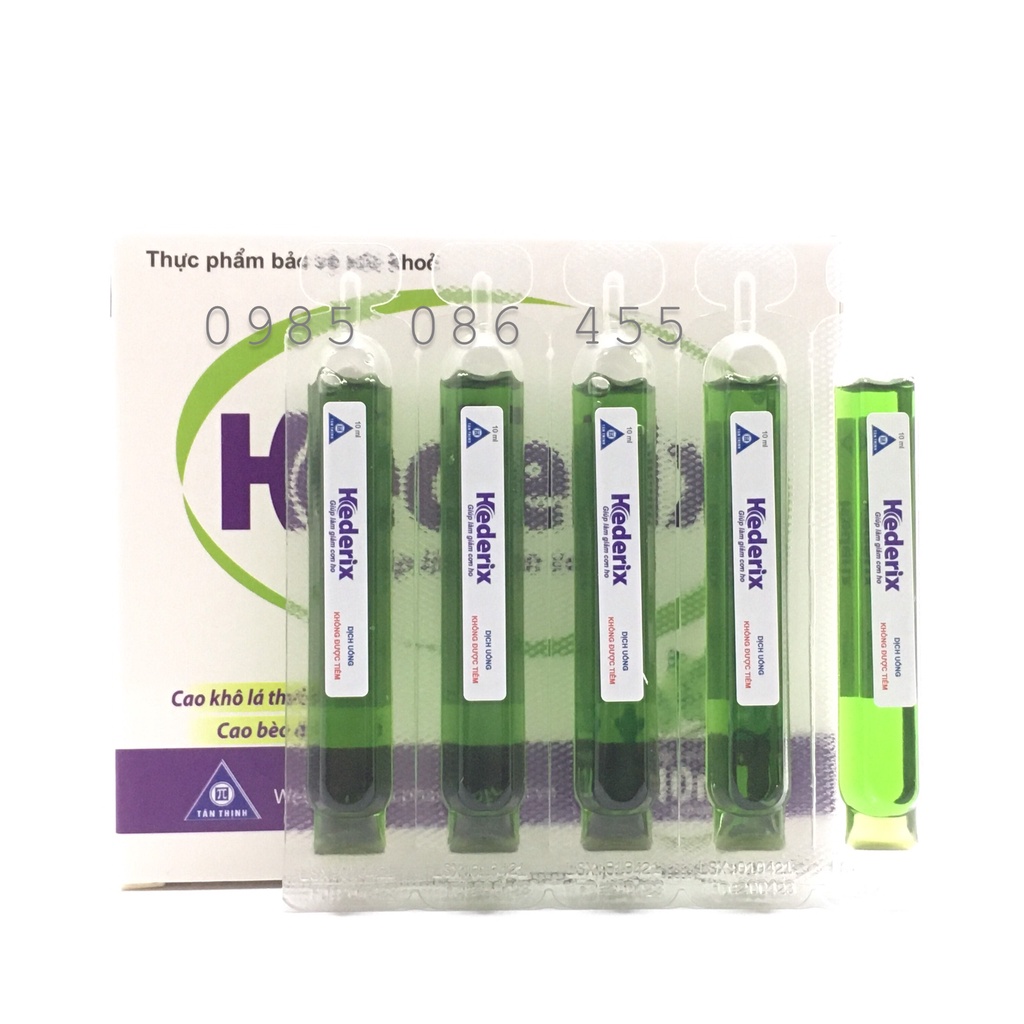 Thành phần: Mỗi ống 10 ml có chứa: - Cao khô lá thường xuân: 50 mg - Cao Drosera: 20 mg Công dụng: - Tăng cường chức năng hô hấp giúp cải thiện tình trạng ho của bệnh nhân - Dùng hỗ trợ giảm triệu chứng trong các trường hợp bệnh đường hô hấp cấp hoặc mạn tính có kèm ho Đối tượng sử dụng: Các trường hợp bị ho, ho do thay đổi thời tiết. Dùng được cho cả người lớn và trẻ em. Cách dùng: - Trẻ từ 2-6 tuổi: Uống 1 ống/ ngày. - Trẻ trên 6 tuổi: Uống 2 ống/ ngày, chia 2 lần. - Người lớn: Uống 3 ống/ ngày, chia 3 lần. - Trẻ em dưới 2 tuổi: Hỏi ý kiến bác sỹ trước khi dùng. Lắc kỹ trước mỗi lần dùng Sản phẩm này không phải là thuốc và không có tác dụng thay thế thuốc chữa bệnh