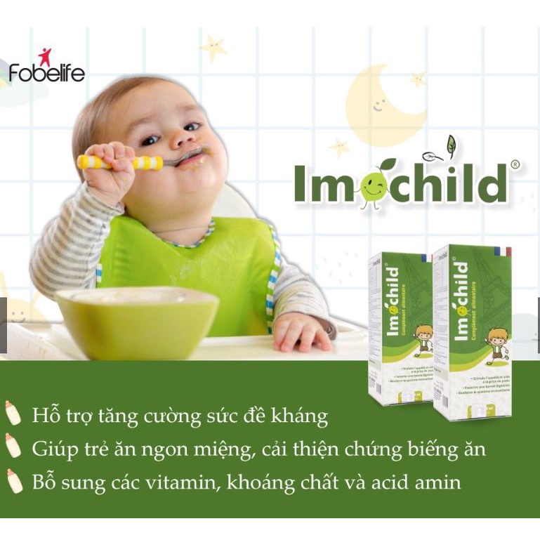Tăng đề kháng Imochild ” Trợ thủ ” đắc lực giúp trẻ ăn ngon và và tăng cường đề kháng Siro Imochild bổ sung các vitamin, khoáng chất và acid amin nhập khẩu chính hãng từ Pháp chứa các thành phần từ thiên nhiên, giúp tăng đề kháng, giảm thiểu tình trạng ốm vặt, giúp bé ăn ngon và tăng cường tiêu hóa để bé có một cơ thể khỏe mạnh nhất và có thể phát triển đầy đủ về mọi mặt. Bên cạnh đó, các sản phẩm này dành cho các bé nên rất dễ sử dụng và rất dễ uống, các bé sẽ thực sự yêu thích sản phẩm này. Công Dụng: Bổ sung vitamin, khoáng chát và acid amin Giúp trẻ ăn ngon miệng cải thiện biếng ăn Hỗ trợ tăng cường đề kháng cho bé Đối tượng sử dụng: Bổ sung cho trẻ từ 1 tuổi trở lên. Trẻ đang trong giai đoạn phát triển. Trẻ biếng ăn, ăn không ngon miệng, suy dinh dưỡng. Trẻ chậm tăng cân do hấp thụ dưỡng chất kém. Trẻ cần tăng sức đề kháng, đang trong thời kì hồi phục sau khi ốm dậy Thành phần: Beta-(1.3 -1.6)-D-gluacan :100mg Kẽm gluconat : 25mg Tricanxi photphat : 10mg Vitamin D3 (cholecalci ferol) : 200IU Vitamin B1, Vitamin B2, Vitamin B6 : 0,6mg Vitamin PP (Nicotinamide) : 1mg L-Lysine : 60mg Taurine : 5mg Fructo oligo saccharide : 50mg Dịch chiết cỏ cà ri : 2ml Hướng dẫn sử dụng : Từ 1 – 6 tuổi: 5ml/lần x 2 lần/ngày. Trẻ từ 7-10 tuổi: 15ml – 20ml/ngày. Trẻ từ 10 tuổi trở lên và người lớn: 10ml – 15ml/lần x 2 lần/ngày. Hạn sử dụng: 36 tháng kể từ ngày sản xuất Xuất xứ: Pháp Lưu ý Thực phẩm này không phải là thuốc và không có tác dụng thay thế thuốc chữa bệnh Không dùng cho người mẫn cảm với bất kì thành phần nào của sản phẩm. Sản Xuất Tại Công Ty Cổ Phần Dược Mỹ Phẩm Pháp EIFFEL Phân Phối và tiếp thị tại Công ty Cổ Phần Fobelife : Chế Lan Viên, Phường Tây Thạnh, Quận Tân Phú, Hồ Chí Minh. Địa Chỉ của Fobelife Store: Chế Lan Viên, Phường Tây Thạnh, Quận Tân Phú, Hồ Chí Minh. #siro #biếng_ăn # sức_đề_kháng #tăng #tăng_sức_đề_kháng #anngon #trẻem #siro_Imochild #siroImochild #Imochild #tangdekhang #tăngđềkháng #anngonImochild #ănngonImochild #tăng_đề_kháng #tang_de_khan #siro_Imochild #siroImochild #Imochild #tangdekhang #tăngđềkháng #anngonImochild #ănngonImochild #tăng_đề_kháng #tang_de_khan #siro_Imochild #siroImochild #Imochild #tangdekhang #tăngđềkháng #anngonImochild #ănngonImochild #tăng_đề_kháng #tang_de_khan