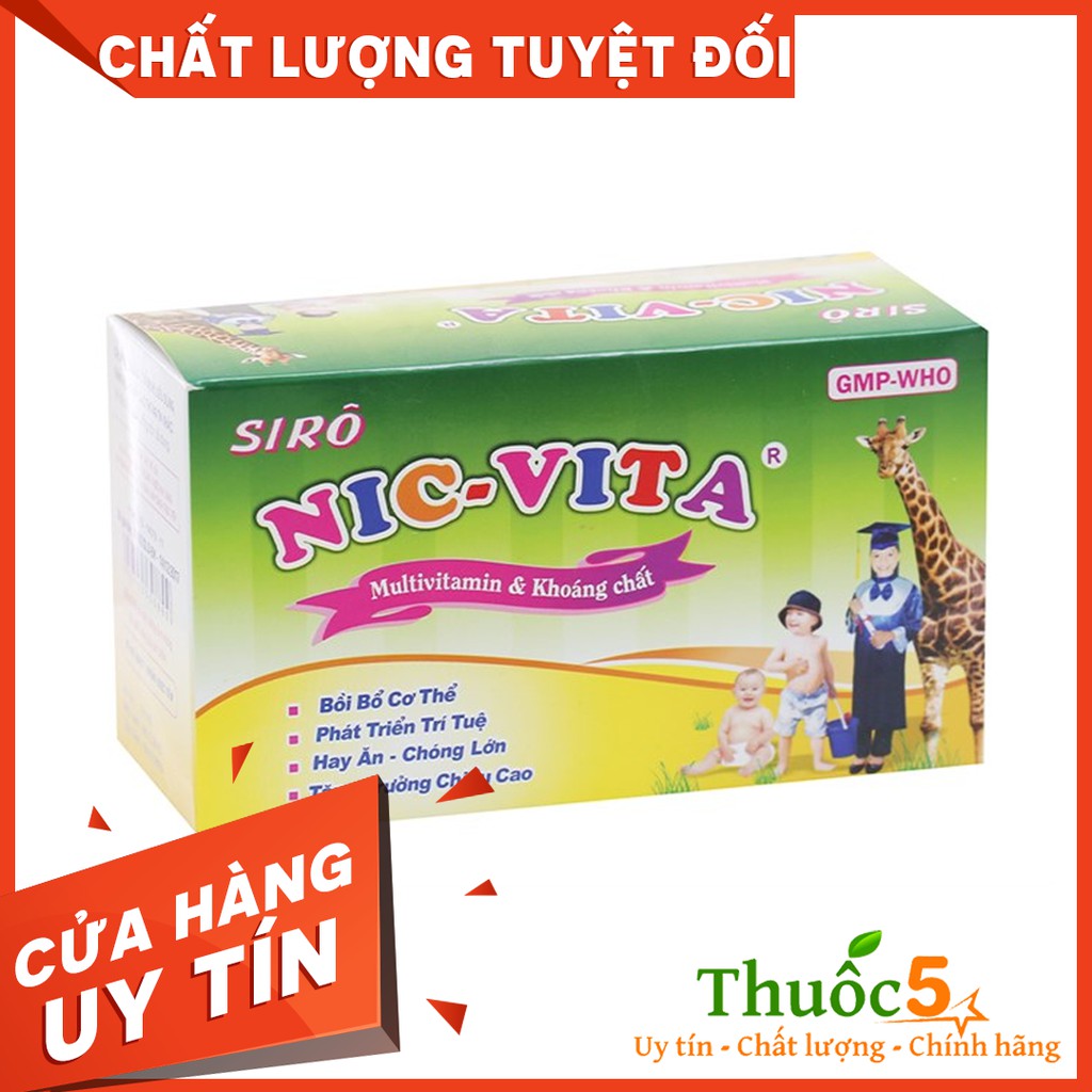 Cung cấp dinh dưỡng mỗi ngày, bổ sung sự thiếu hụt dinh dưỡng giúp trẻ phát triển trí tuệ Đối tượng sử dụng Siro Nic-vita được dùng cho trẻ em Liều dùng và Cách dùng sản phẩm Siro Nic-vita như thế nào? Trẻ em < 2 tuổi: uống 1/3 – 1/2 ống mỗi ngày Trẻ em 2 – 5 tuổi: uống 1/2 – 1 ống mỗi ngày Lưu ý: Sản phẩm này không phải là thuốc không có tác dụng thay thế thuốc chữa bệnh. #vitamin#lysin#tăngsucdekhang