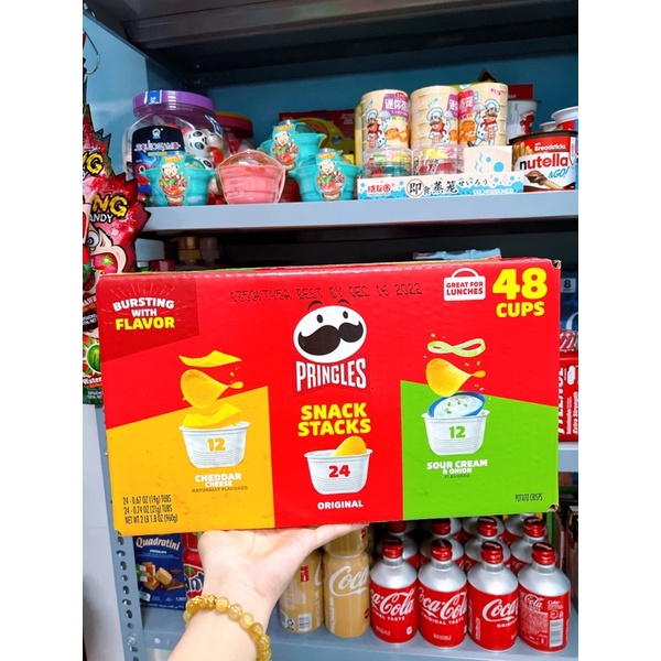 𝐒𝐧𝐚𝐜𝐤 𝐊𝐡𝐨𝐚𝐢 𝐓𝐚̂𝐲 𝐂𝐡𝐢𝐞̂𝐧 𝐏𝐫𝐢𝐧𝐠𝐥𝐞𝐬 ✔️✔️✔️ Thùng 48 chén - có bán tách lẻ 👉🏻 Hàng chính hãng từ Mỹ. Pringles là hãng ngon trước giờ luôn nhen mng , hàng Mỹ nên ăn cực ngon ạ. 👉🏻 Snack khoai tây Pringles được chế biến từ những lát khoai tây tươi - không chất bảo quản