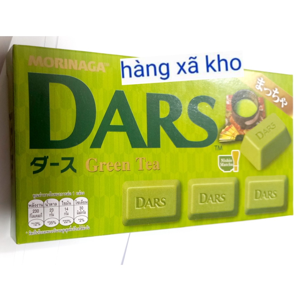 Giới thiệu SOCOLA DARS MORINAGA 42G Date mới đủ vị Green Tea- trà xanh Dark Choco 41% cacao - Milk Choco - sữa - White Choco - trắng - Strawberry - dâu Chocolate Morinaga DARS (12 viên - 42gr) DARS là một trong những sản phẩm bán chạy nhất của Morinaga. Trong 1 hộp có 12 miếng sô cô la thơm ngon được gói trong một gói giấy bạc trong hộp. Bạn sẽ thưởng thức những tan chảy trong miệng của bạn trong khi trải nghiệm một hương vị sô cô la chất lượng cao. Morinaga là một trong những nhà sản xuất bánh kẹo lâu đời và phổ biến nhất của Nhật Bản.