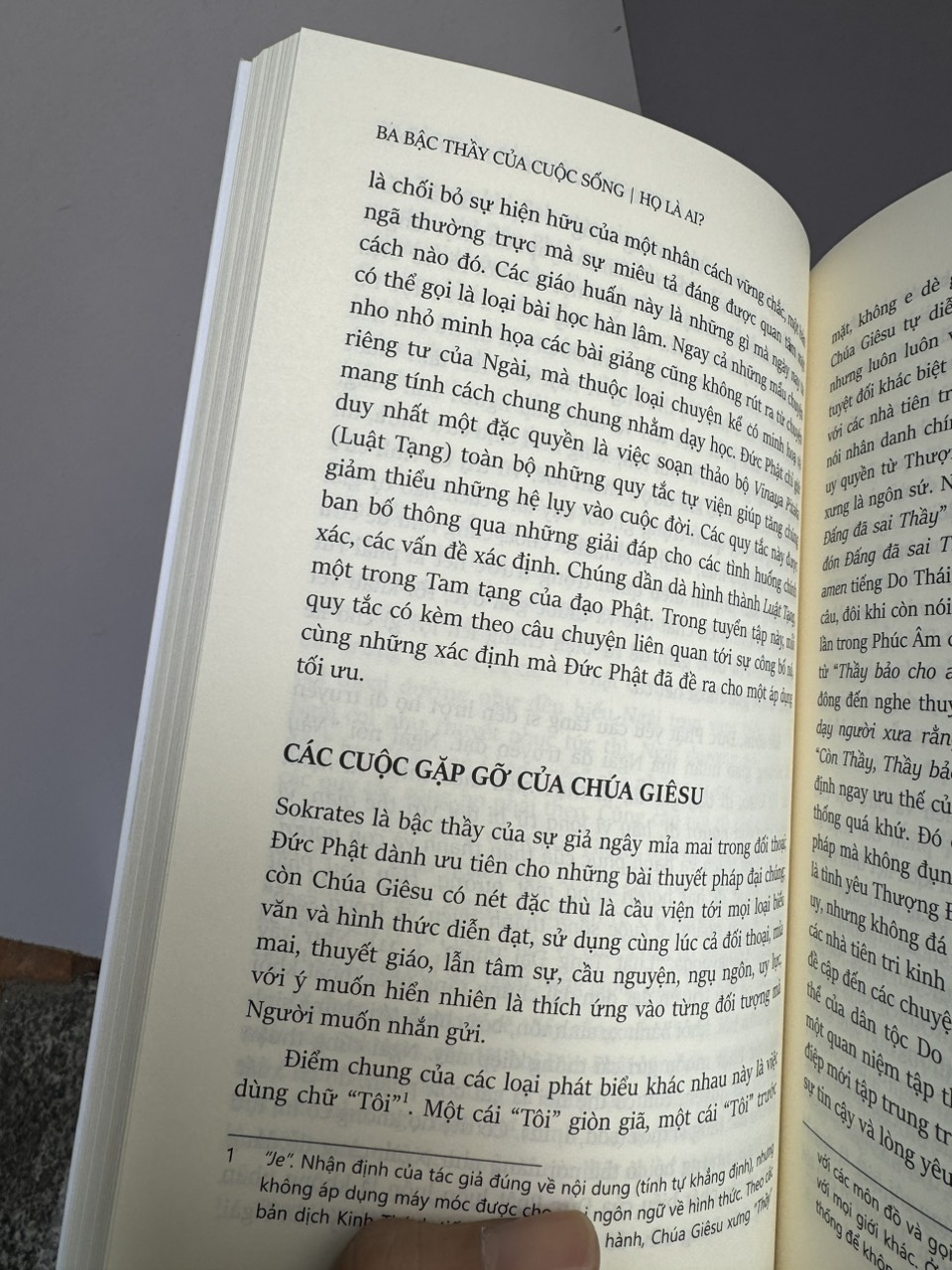Cuộc khủng hoảng này không thuần túy là kinh tế và tài chính, mà còn là triết lý và tâm linh nữa. Nó đưa ta về những câu hỏi phổ quát: cái gì khiến con người hạnh phúc? Cái gì có thể coi là sự tiến bộ thực sự? Đâu là những điều kiện cho một xã hội hài hòa? Trái với cách nhìn con người và thế giới thuần túy vật chất, Sokrates, Chúa Giêsu và Đức Phật là ba bậc thầy của cuộc sống. Một cuộc sống mà họ không bao giờ đóng khung trong một quan niệm kín kẽ và giáo điều. Trải qua nhiều thế kỷ, lời dạy của các vị vẫn không một nếp nhăn, và vượt lên các dị biệt, chúng đồng quy trên điều chính yếu: hiện hữu của con người là quý báu, và dù đến từ đâu, mỗi người đều được mời gọi cầu tìm chân lý, tự hiểu biết chính mình từ hâm sâu, sống tự do, an hòa với chính ta và kẻ khác. Một thông điệp nhân bản và tâm linh, nó trả lời thẳng thắn cho câu hỏi cốt yếu: vì sao tôi sống, tôi sống vì cái gì? Họ dạy ta và giúp ta sống. Họ không đề nghị chúng ta một thứ hạnh phúc “chìa khoá trong tay”, mà thứ hạnh phúc là thành quả của một trải nghiệm đích thực trên chính mình. Họ nói về niềm vui hơn là về khoái lạc. Họ là những hướng dẫn viên đòi hỏi, những người “đỡ đẻ” tử tế, những người tỉnh thức muôn đời. *** (Tái bản 2023) SOKRATES, CHÚA GIÊSU, ĐỨC PHẬT (Ba bậc Thầy của cuộc sống) Tác giả: Frédéric Lenoir Biên dịch: Võ Thị Xuân Sương Phát hành: IRED Books | NXB Tổng Hợp HCM *** Thông số cơ bản: Hình thức: Bìa mềm Khổ sách: 14 x 21 cm Số trang: 304 Cân nặng: 400grGiá sản phẩm trên Tiki đã bao gồm thuế theo luật hiện hành. Bên cạnh đó, tuỳ vào loại sản phẩm, hình thức và địa chỉ giao hàng mà có thể phát sinh thêm chi phí khác như phí vận chuyển, phụ phí hàng cồng kềnh, thuế nhập khẩu (đối với đơn hàng giao từ nước ngoài có giá trị trên 1 triệu đồng).....