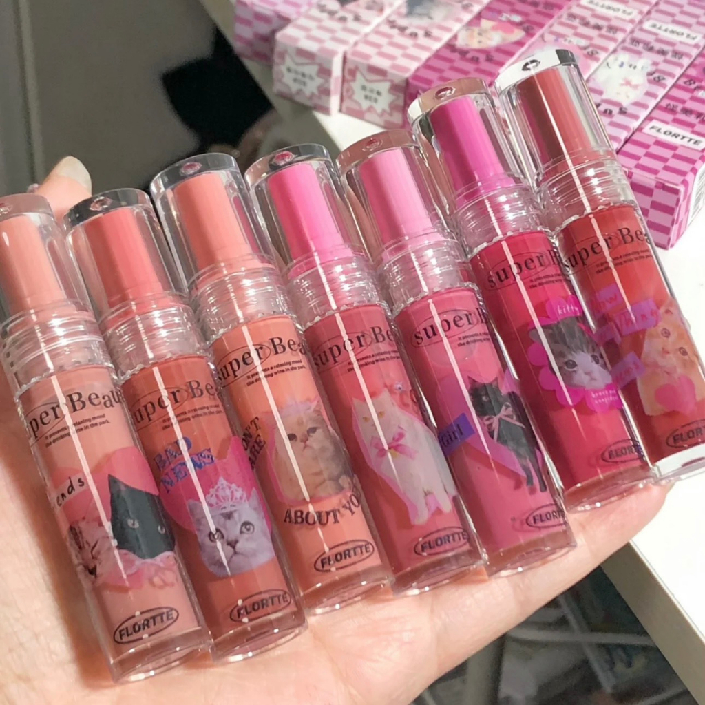 Son kem bóng mèo FLORTTE căng mọng mềm môi Super Beauty FLOR13 Nhà Flortte mới tung ra bst son với packaging hình mèo xinh xắn, dễ thương. Chất son kem bóng trong veo mỏng và nhẹ môi, lên màu chuẩn, khả năng dưỡng ẩm tốt mà không gây bết dính, bí môi. Với chất son này
