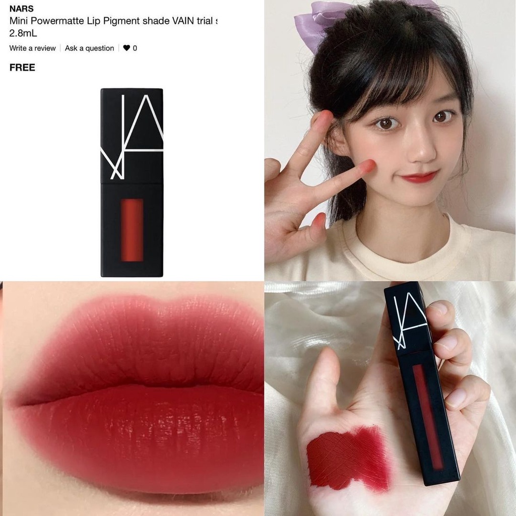 Son NARS Power Matte Lip Pigment sơ hữu Chất son kem lỳ nhưng cực kỳ mỏng nhẹ, son lỏng và ướt như son tint luôn ấy nên rất dễ tán và điều chỉnh lượng son trên môi cho phù hợp. Son không hề gây khô hay bong tróc môi cũng bởi chất son mỏng độc đáo. Thậm chí còn tạo hiệu ứng môi căng hơn chứ ko hề đọng vào nếp nhăn hay bị bột. Son lên màu đậm, chuẩn, sắc nét. Màu chuẩn so với swatch. Son rất mượt và tiệp môi, không bị dây ra cốc chén nếu ăn uống khéo. Shop có sẵn fullsize và minisize các màu các bạn xem phân loại hàng khi đặt nhé.