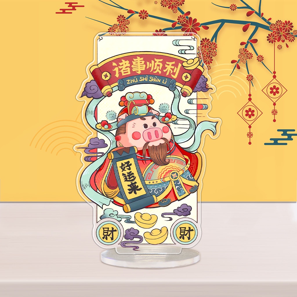 Standee mica Ani Decor bền đẹp in hình ông Thần Tài ngày Tết phát lộc trang trí góc học tập bàn làm việc