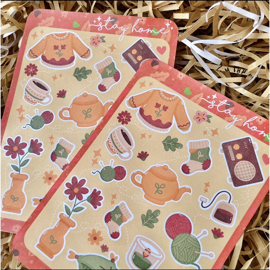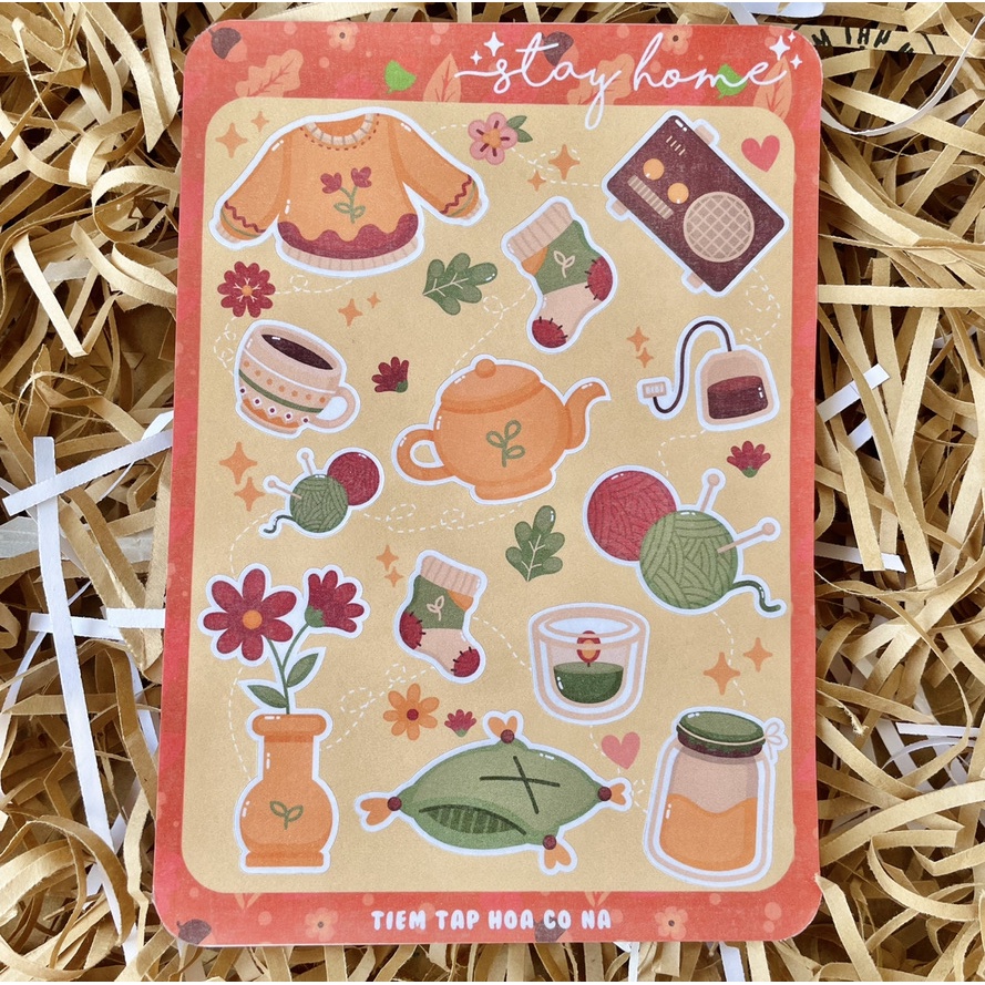 Sticker sheet Stay Home - Ngôi nhà ấm cúng LƯU Ý: Đây là sản phẩm Handmade nên mỗi sản phẩm đều có nét riêng không giống hệt như sản phẩm được sản xuất công nghiệp. Mong bạn bỏ qua một số điểm khiếm khuyết không đáng kể và sai số nhỏ về kích thước ➡️ Xuất xứ: Việt Na