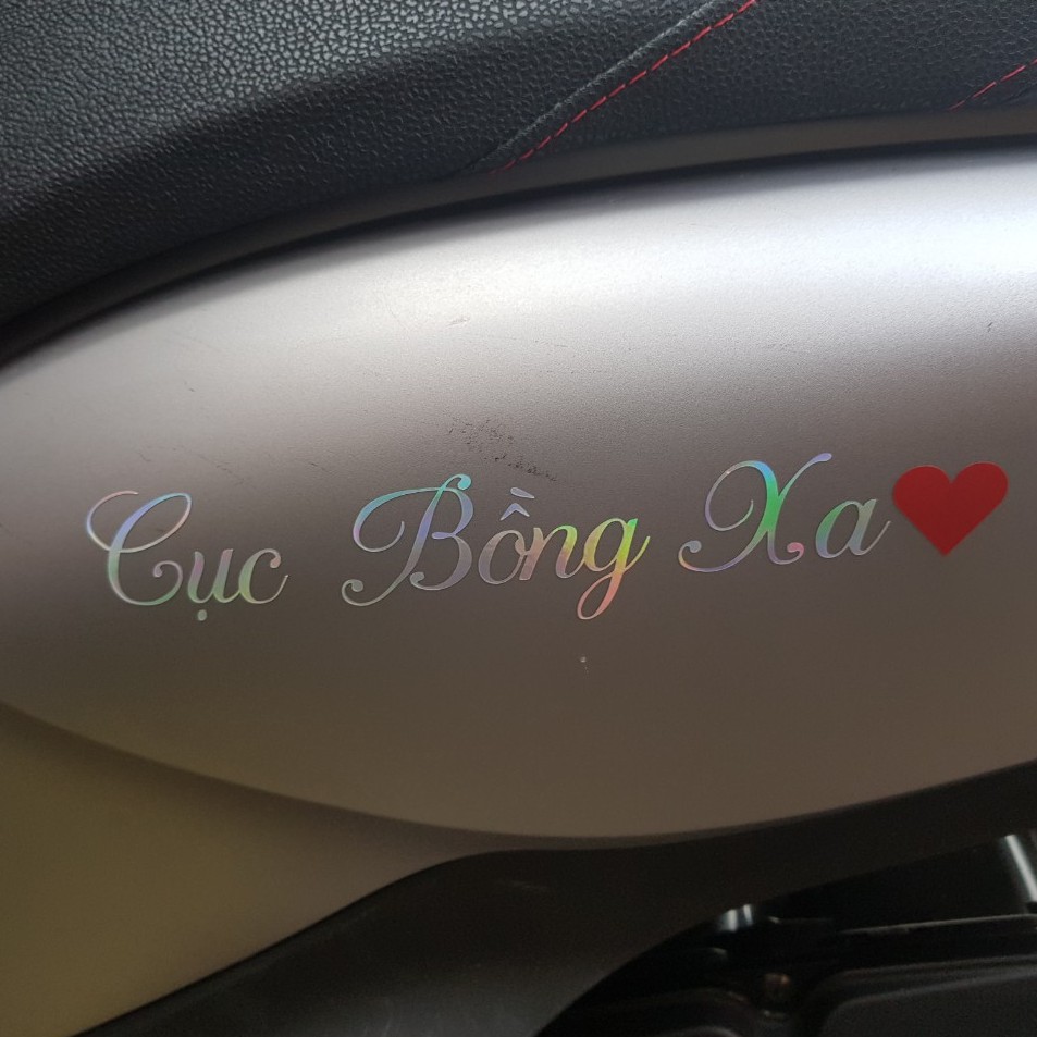 Sticker được thiết kế theo yêu cầu, bạn có thể tùy chọn kiểu chữ, hình kèm theo thoải mái TRƯỚC KHI CHO HÀNG VÀO GIỎ VUI LÒNG CHAT VỚI SHOP TƯ VẤN TỐT NHẤT và lên demo theo yêu cầu của bạn nhé! Vui lòng ghi chú trong đơn hàng theo mẫu: [NỘI DUNG CHỮ] [Hình kèm theo] Thông tin sản phẩm: - Kích thước: 4 x 18cm hoặc tùy chọn - Chất liệu: decal 7 sắc cao cấp Sản phẩm sẽ được gửi kèm hướng dẫn dán sticker và hoàn toàn có thể tự dán dễ dàng. Mọi chi tiết liên hệ 0904560191 (Zalo) để được hỗ trợ.