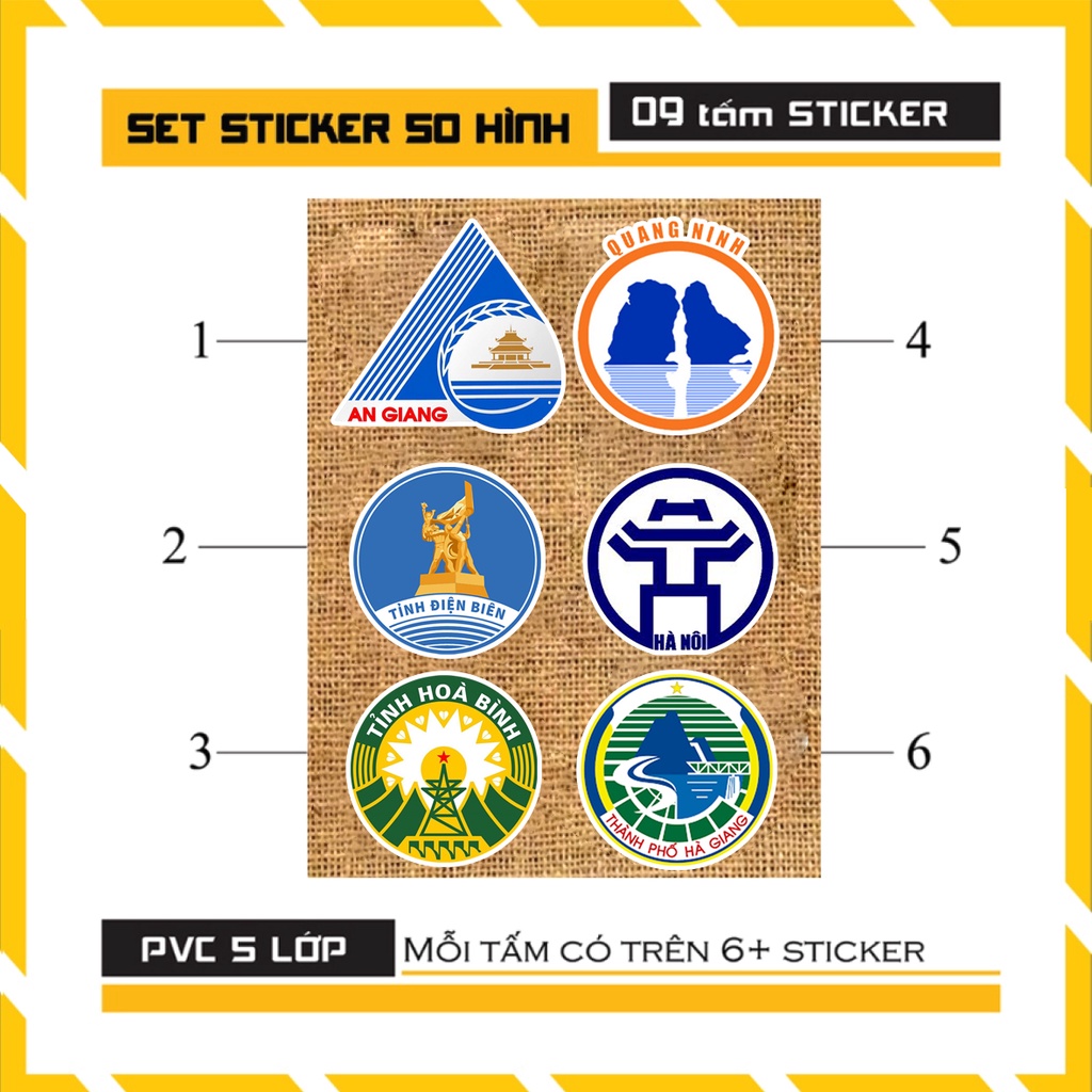 Sticker Logo Biểu Tượng 63 Tỉnh Việt Nam - Hình Dán Nón Bảo Hiểm Chống Nước Cắt Sẵn Từng Hình