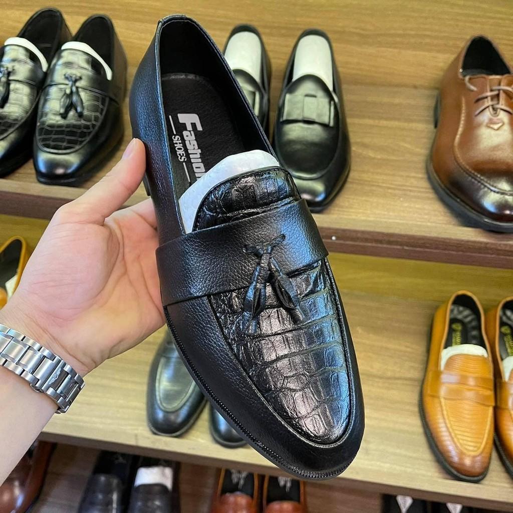 GIÀY LƯỜI DA NAM DẬP VÂN CÁ SẤU- ĐẾ CAO KHÂU CHẮC CHẮN - DA MỀM, CÓ CHUÔNG - MÃ G01 - HÀNG VIỆT NAM
