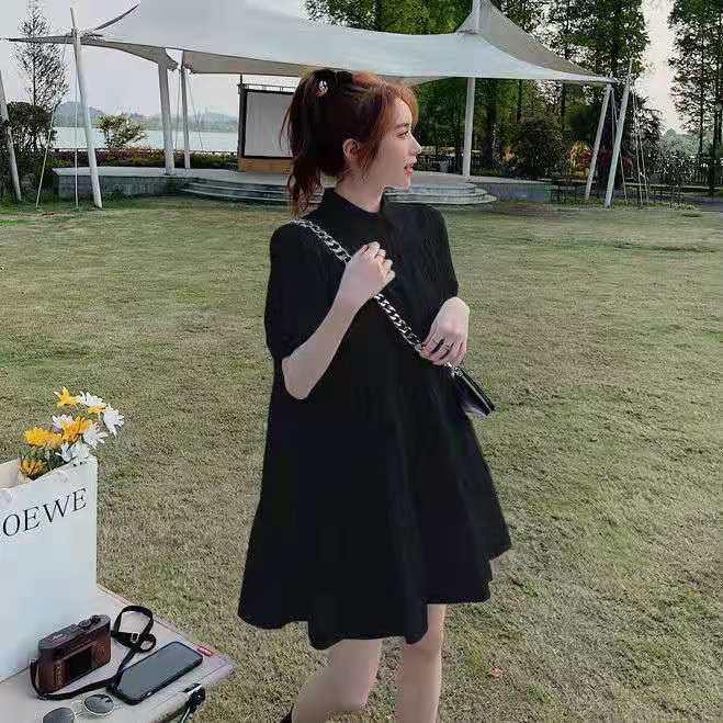 CHENGRUI Cô gái đại học gió đầm mùa hè 2023 trẻ em váy dài màu đen bông ngắn tay công chúa váy mỏng