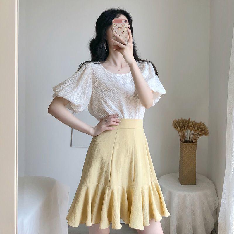 CHENGRUI Mùa hè cô gái nhỏ hương thơm Pháp ngọt ngào cay áo nổ đường phố giảm tuổi thời trang hơi béo hoa nửa người váy hai bộ